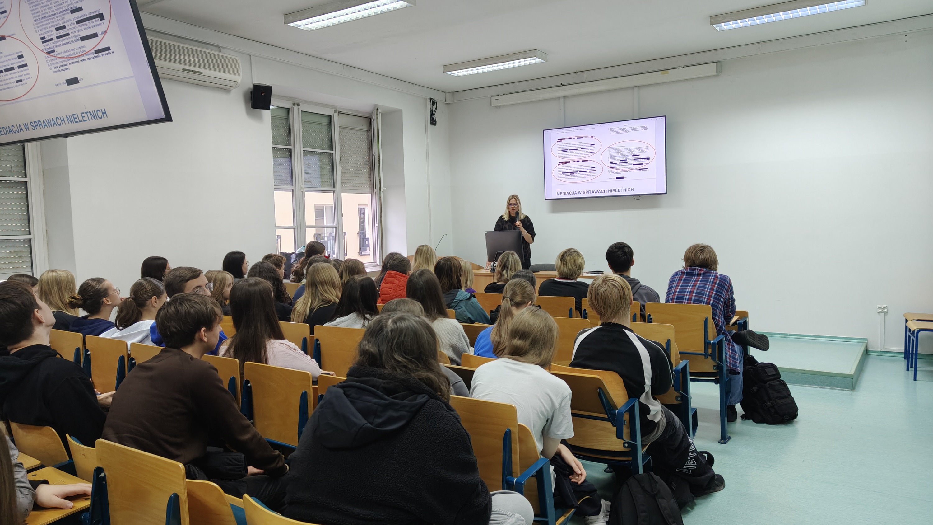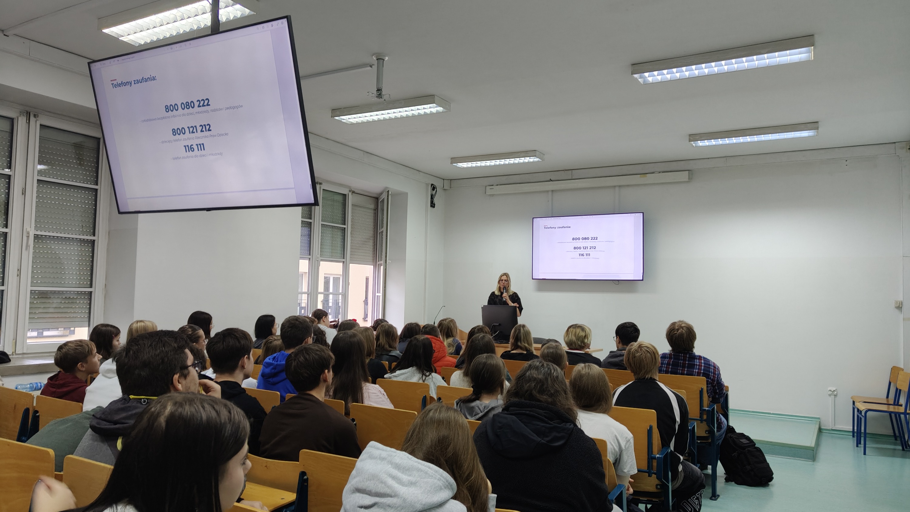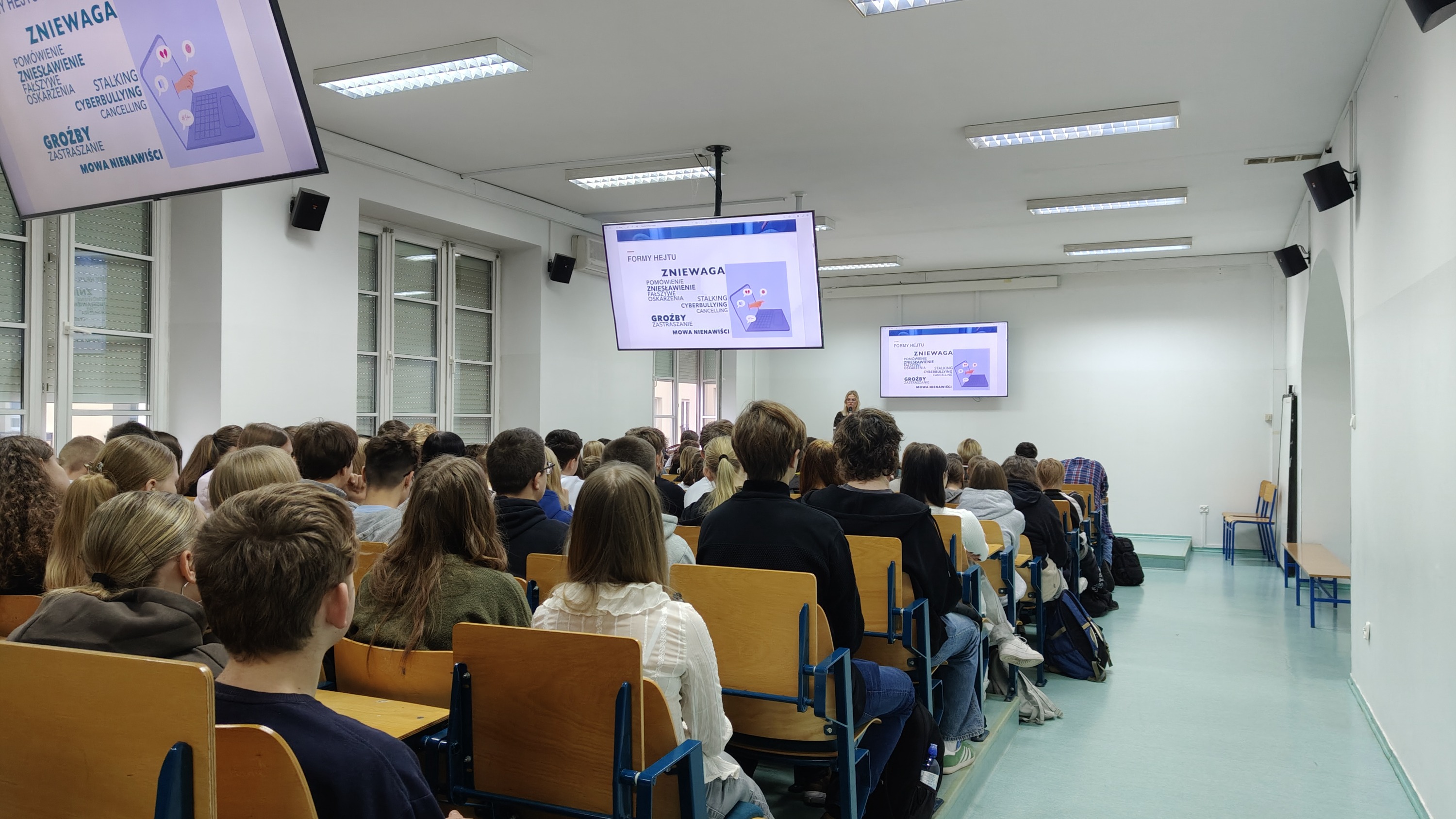 Tematem prelekcji było niezwykle aktualne i ważne zagadnienie „Prawo vs. hejt. Szkoła wolna od hejtu”. Pani mecenas w przystępny i profesjonalny sposób przybliżyła młodzieży pojęcie hejtu, jego przyczyny, skutki oraz konsekwencje prawne wynikające z szerzenia nienawiści w Internecie i w życiu codziennym.